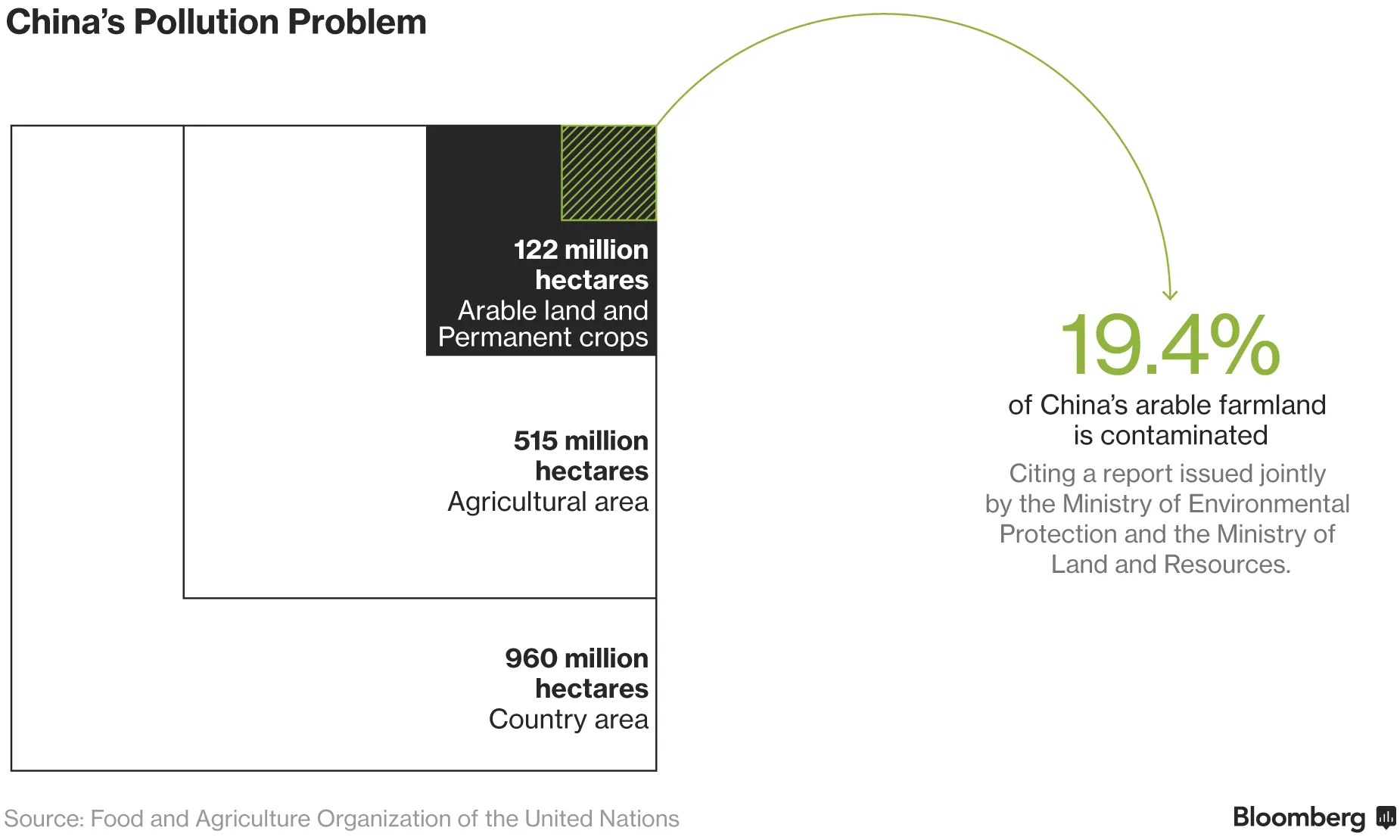 中国的农业格局可以简单概括:可耕地太少,分成太多小块,由太多农民耕作,而这些农民大多数年龄偏大。而且大部分土壤受到污染。