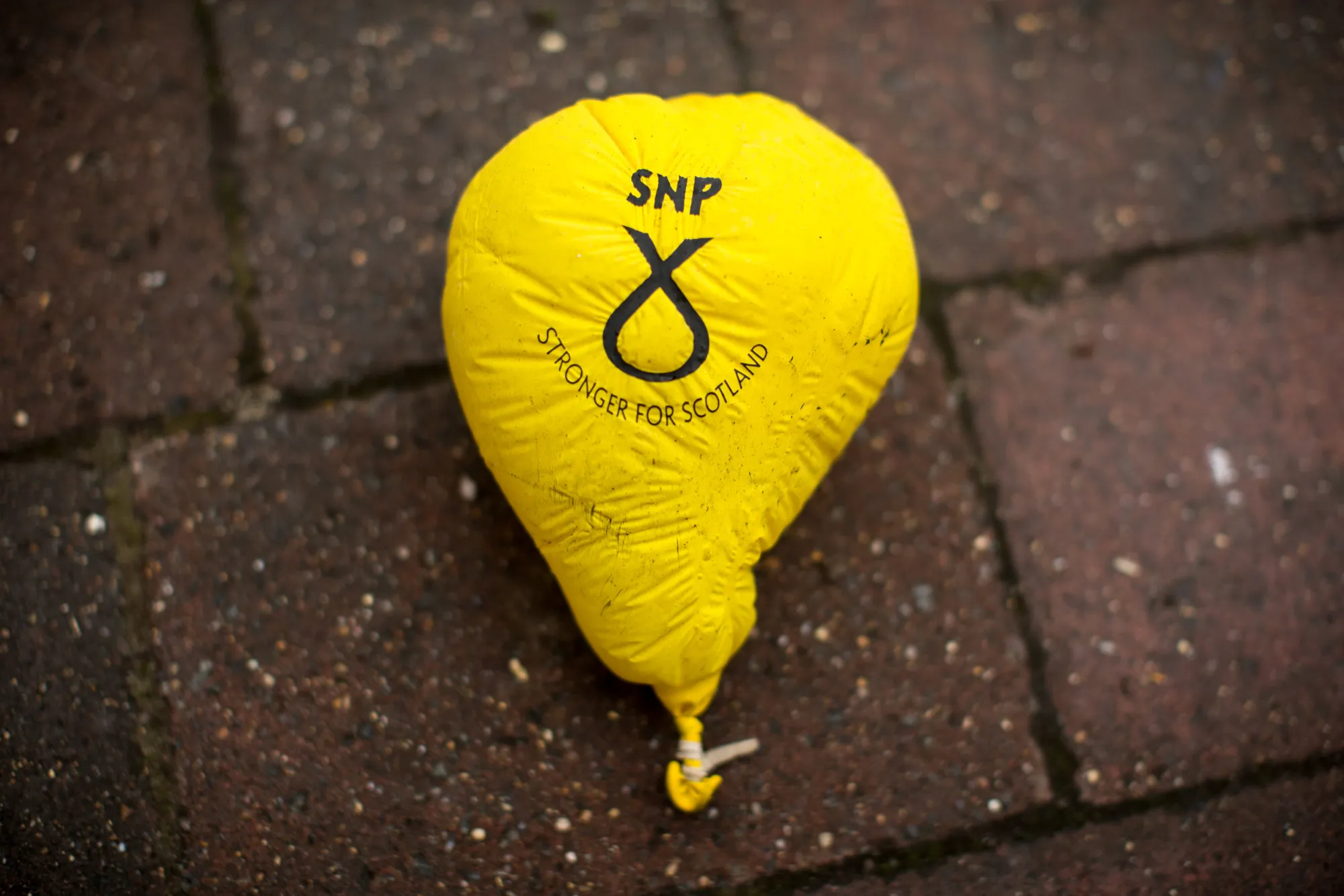摄影师:马修·劳埃德/彭博社在福雷斯的一个潮湿的高地早晨,镇上主要街道上唯一的英国选举迹象是一只被雨水淋湿的干瘪的黄色苏格兰民族党气球,随意丢弃在地。