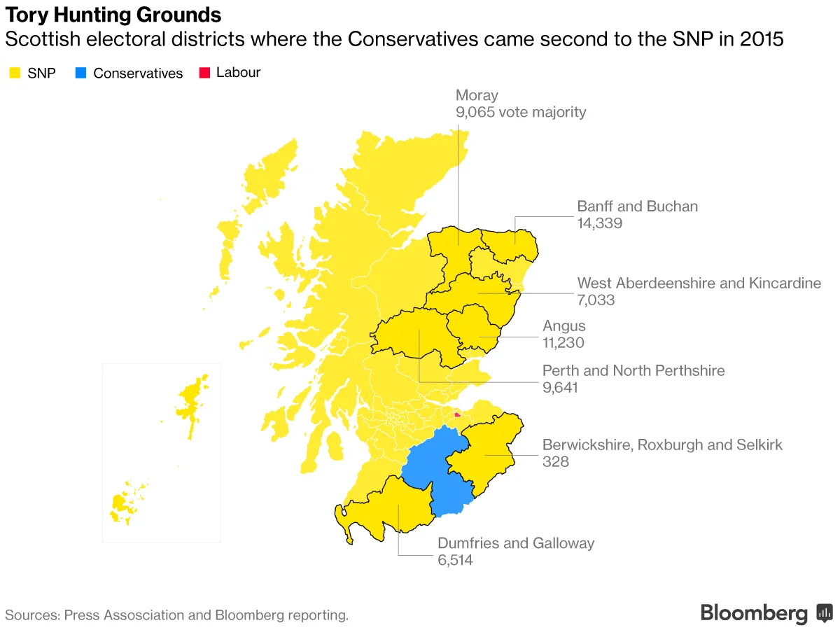 随着曾经主导的托尼·布莱尔和戈登·布朗的工党在苏格兰几乎已成过气力量,保守党嗅到了机会。自1997年以来,他们在苏格兰没有超过一个的西敏寺席位,并且押注于那些对苏格兰民族党领导人尼古拉·斯特金推动第二次苏格兰公投感到不安的“留”者能够在现在的民族党领土中带来广泛的侵入。