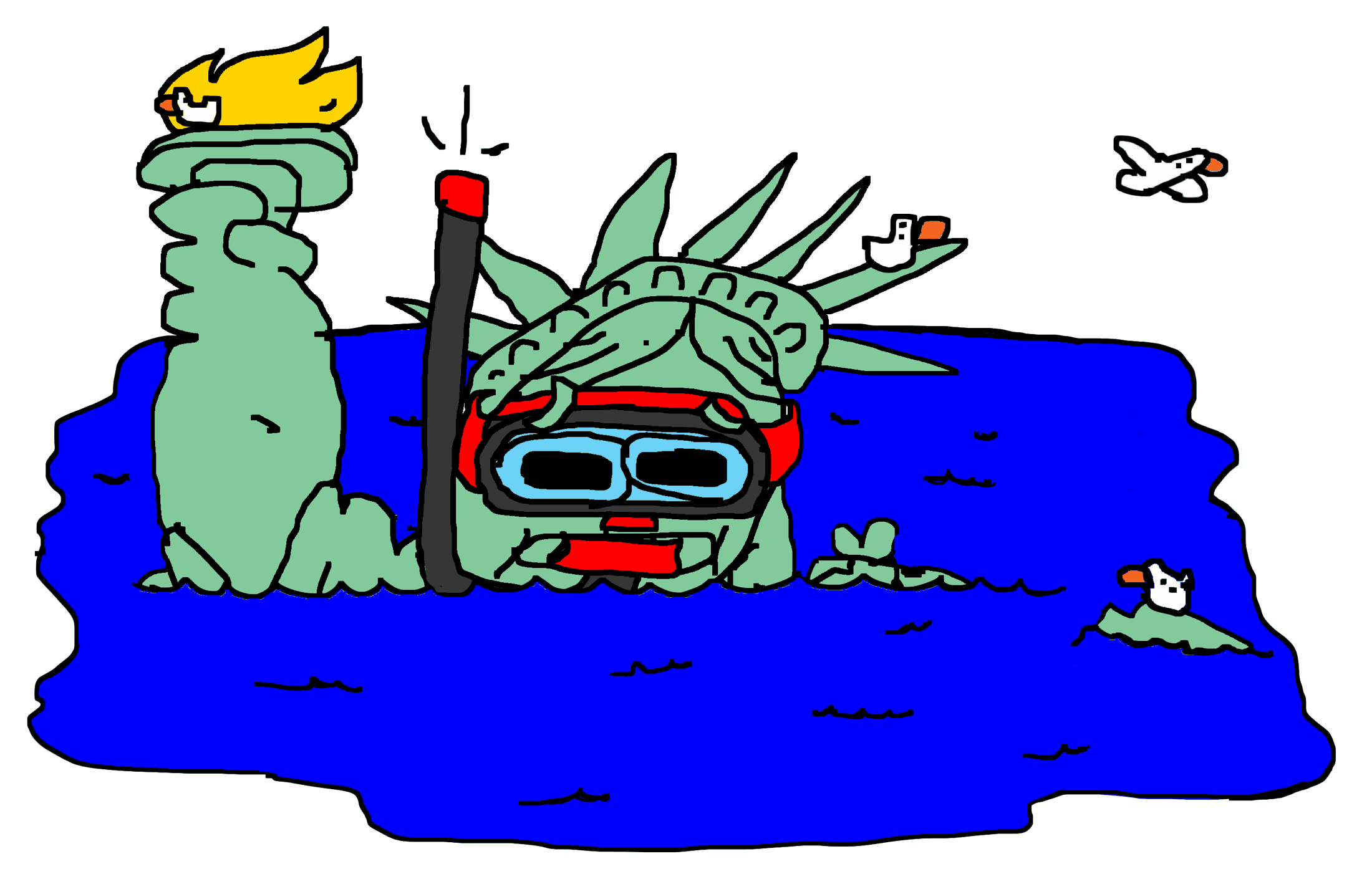 最明智的做法可能是将我们的资金用于安置人们,让自然在自由女神像上发挥作用——如果她淹没了,就让她成为人类傲慢的纪念碑。这座雕像在水下可能是一个更好的象征,而不是在水面上高耸。