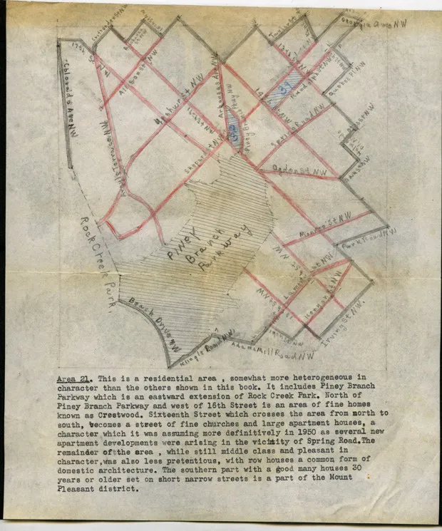 怀默绘制的华盛顿特区Mt. Pleasant社区周边的地图。感谢华盛顿特区历史协会。怀默将这项工作保留了几十年,但他希望它能为未来的华盛顿特区居民和历史爱好者服务。以下是他在相册第一页中包含的一首诗“致年轻历史学家”: