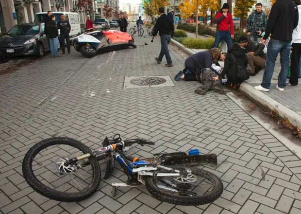 人们在帮助一名在温哥华发生碰撞的骑自行车者。安迪·克拉克/路透社在一些医学界,超过39岁被视为 风险因素,可能导致生活改变的骑自行车伤害。骑自行车事故中可能发生的所有有趣的事情,比如脑室内出血和硬膜下血肿,在老年人群中更为常见。与此同时,如果你超过55岁,被汽车撞到时死亡的几率是年轻人的两倍。