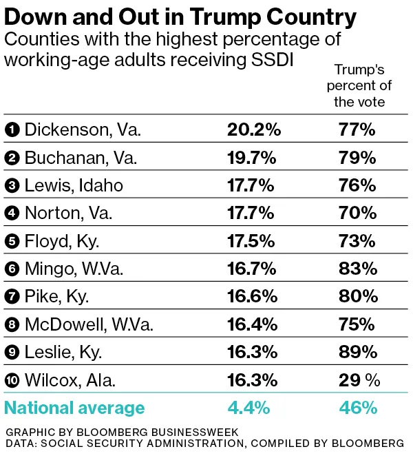 底线: 特朗普提议削减700亿美元的社会保障残疾支付将对他一些最坚定的支持者造成最严重的影响。