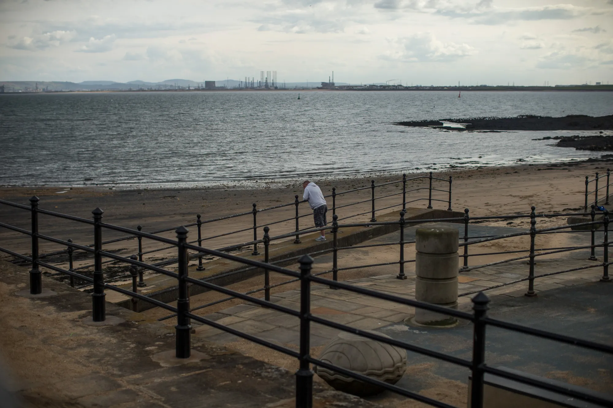 一名行人从哈特尔浦的海岬望向海滩。摄影师:马修·劳埃德/彭博社从雇佣近7000人的日产汽车工厂,到沿海的可再生能源公司、美国和沙特拥有的化工厂以及日立火车工厂,东北经济依赖于外国雇主。它向欧盟出口的比例比英格兰的任何其他地区都要大。然而,这里也是英国可支配收入最低、失业率最高的地方。