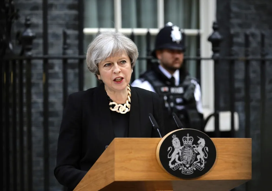 英国首相特蕾莎·梅在伦敦桥袭击后在唐宁街10号外发表讲话。凯文·库姆斯/路透社紧张的选举:在周六伦敦的暴力事件之后——这是该国近期发生的第三起严重恐怖袭击——英国人准备前往投票,原本预计这次选举将是首相特蕾莎·梅的压倒性胜利。梅在最近的袭击后采取了对抗的语气,表示“我们国家对极端主义的容忍度太高了。”她的主要对手,工党领袖杰里米·科尔宾,在紧缩时代谈论公共安全。华盛顿邮报报道: