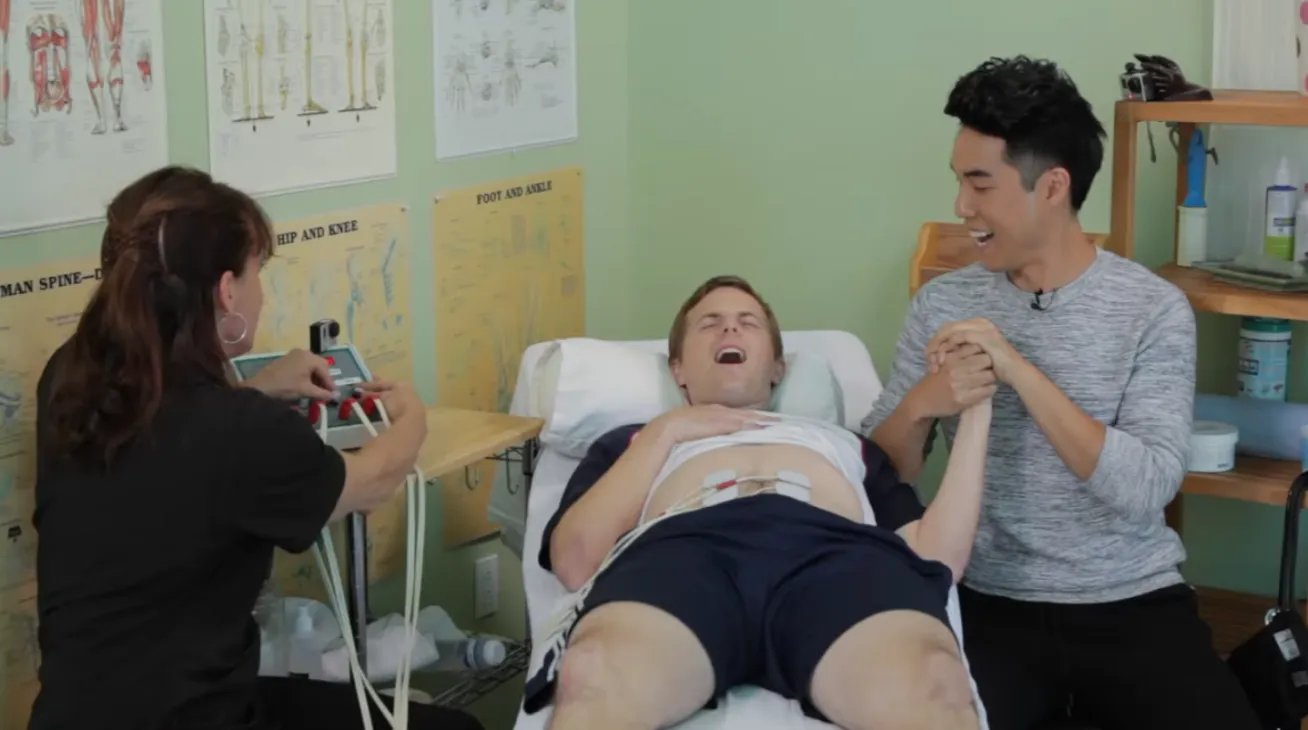 尝试小组(在这里,模拟分娩疼痛)。来源:BuzzFeed监督这个千禧一代的蜂巢的是Ze Frank,BuzzFeed娱乐集团的总裁。45岁的Frank并不是那种会纠结于尴尬的人。他说,传统电视的目标是沉浸:让观众忘记自己在观看,沉浸在角色中。网络视频制作则更关注自我意识。观众越意识到他们在观看这个视频并且参与了这个笑话,他们就越可能与朋友分享链接。“你不想让人们忘记他们是谁,”他说。