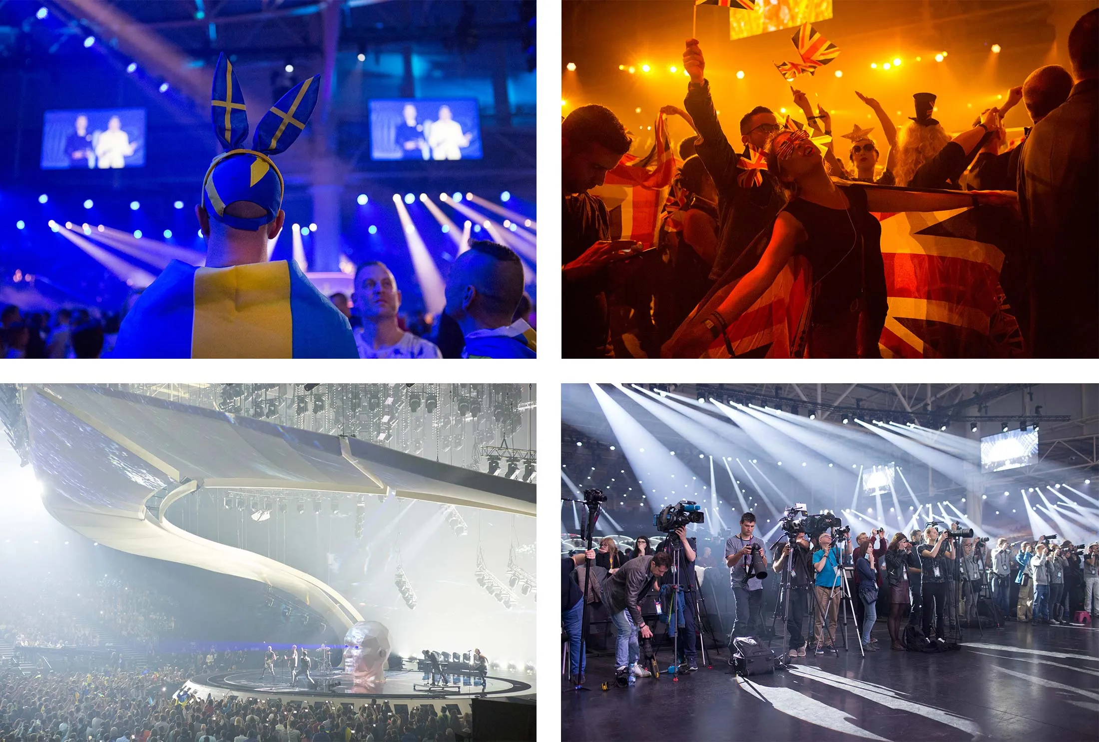 在安全警戒线内,形成了一个微型欧洲。来自整个大陆的约1300名记者挤在新闻中心,许多人用国旗装饰他们的桌子。艺术家和国家代表团被隔离在建筑的另一侧——一个淹没在数十种语言欢快交谈中的化妆间和休息室的复杂区域。