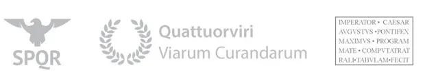 为了真正完成这个效果,特鲁别茨科伊还为这个古老帝国创造了时尚的现代标志,比如罗马共和国的风格化SPQR徽章(它代表Senatus Populus Que Romanus或“罗马的元老院和人民”)。中间有一圈月桂树叶,这是罗马权力的象征,以及Quattuoviri Viarum Curandarum,这是对一个基础设施强化组织的提及,该组织是在奥古斯都统治下成立的。“这有点像罗马的交通部,”特鲁别茨科伊说。“字面意思是‘四位负责道路的官员’,尽管它的官员人数超过了四个。”