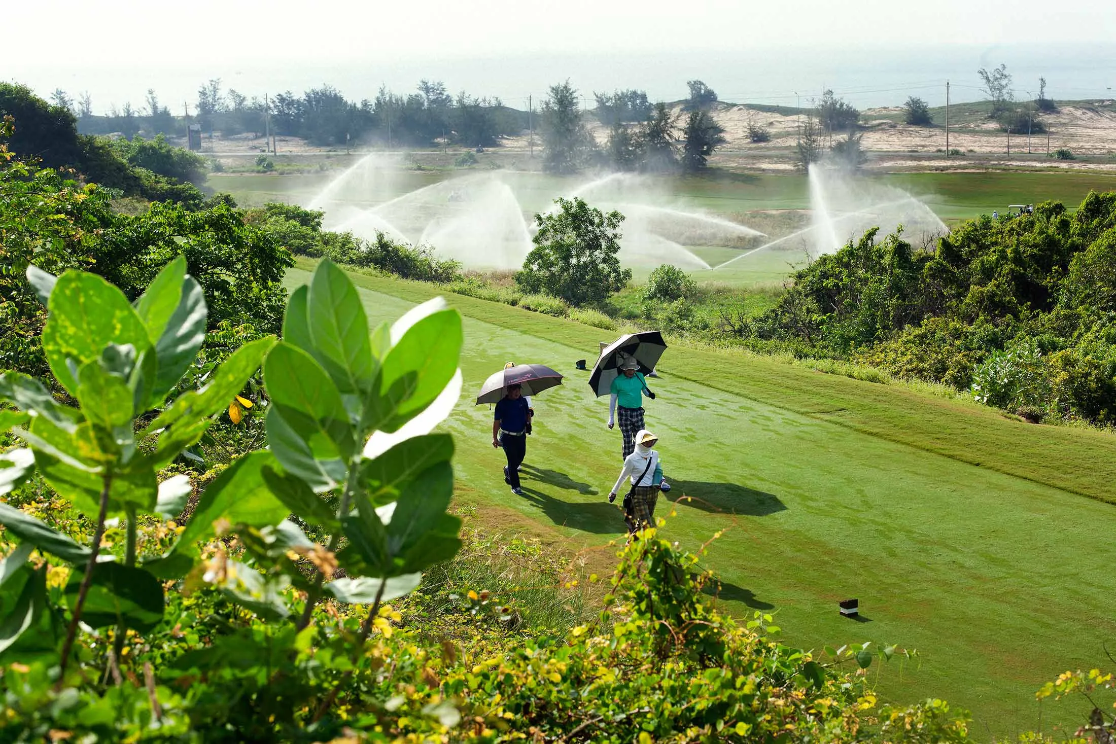 使拉斯维加斯成为拉斯维加斯的许多元素并不适用。一个例子是霍特拉姆的游泳池。大部分时间它都是空的;像许多亚洲人一样,越南人不喜欢晒黑。出于同样的原因,格雷格·诺曼设计的霍特拉姆高尔夫俱乐部的全女球童像木乃伊一样裹得严严实实,脸上戴着白色面具,脖子上覆盖着兜帽,穿着长袖白衬衫,搭配宽大的黄色太阳帽和黄色格子裤。