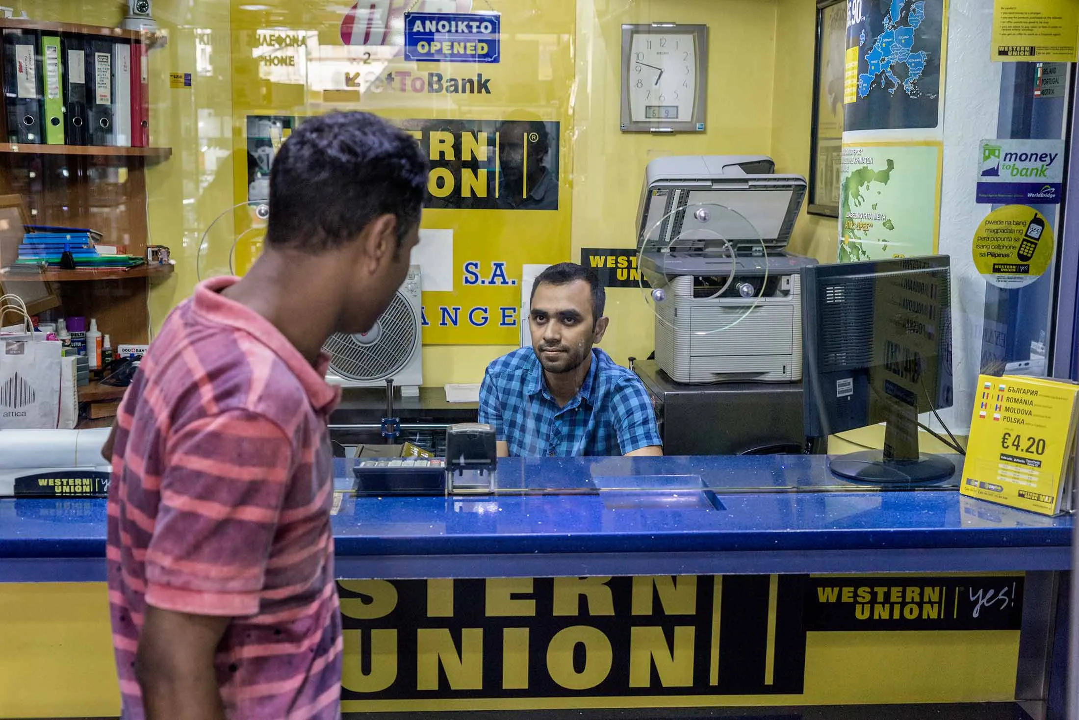 在莱斯博斯的西联汇款柜台。