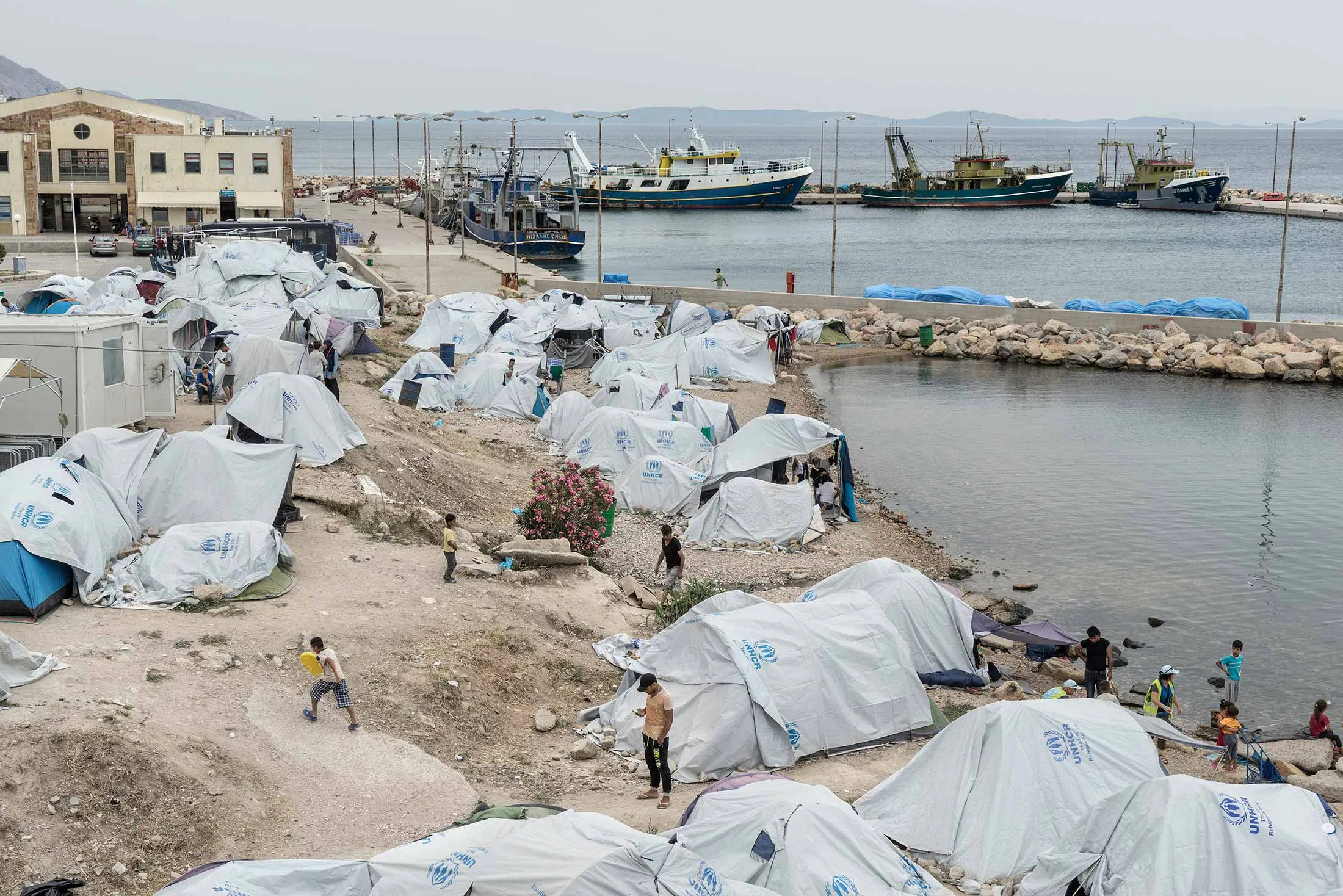 希腊岛屿基奥斯的临时难民营。摄影师:乔治·乔治乌为《彭博商业周刊》拍摄埃尔塞克出生于土耳其父亲和奥地利母亲,他特别关注正在展开的危机。他看到在伊斯坦布尔收到钱的难民出现在索非亚的西联汇款柜台,然后是贝尔格莱德,再到斯德哥尔摩。对他来说,他们的移动让他想起了他的祖父母,那些在第一次世界大战后逃往相反方向的穆斯林难民,从波斯尼亚穿过崩溃的奥斯曼帝国到达安纳托利亚海岸的伊兹密尔市。
