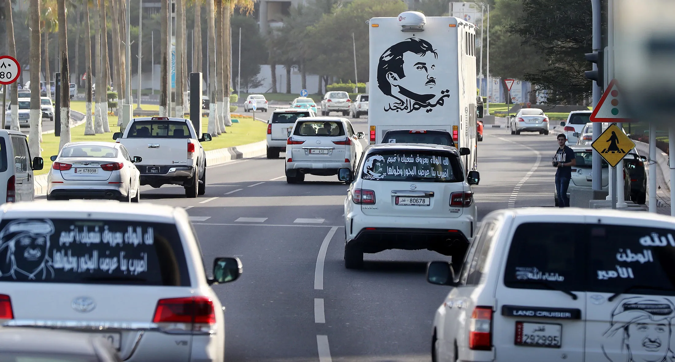 卡塔尔埃米尔塔米姆·本·哈马德·阿尔萨尼的肖像,以及阿拉伯文“光辉的塔米姆”展示在多哈的车辆背面。摄影师:卡里姆·贾法尔/法新社通过盖蒂图片社大约在沙特阿拉伯通过出售石油致富的二十年后,卡塔尔也迎来了令人瞩目的财富,而当它到来时,确实是如此。但这仍然让一代人记得艰难的时光。
