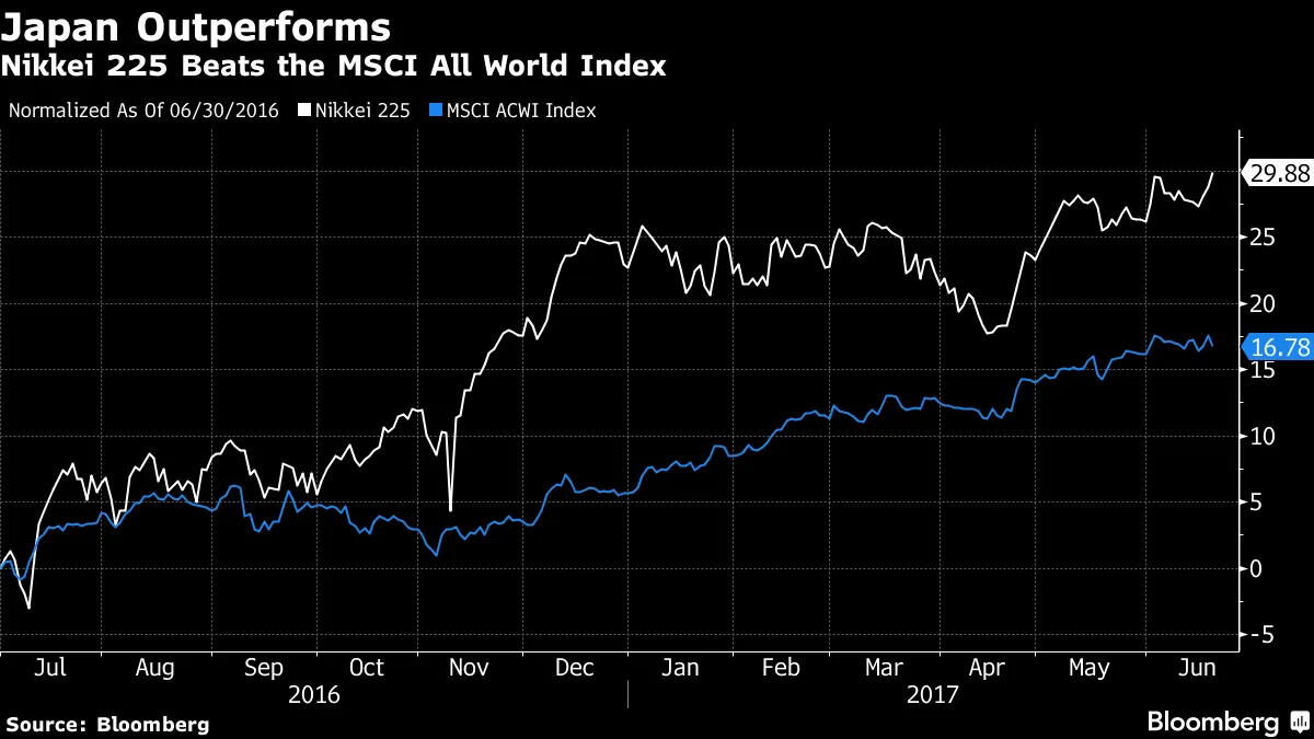 寡妇制造者夺走更多受害者一次又一次证明,反对日本的投资是没有回报的。在过去的十年里,一些非常知名的投资者投入巨额资金,押注该国世界领先的债务与GDP比率235%会导致经济的 spectacular 崩溃。但这并没有发生,许多投资者开始称对日本的押注为“寡妇制造者”交易。最新的例子可以在股市中看到,自2016年初以来,外国人抛售了价值270亿美元的日本股票,即使日经225指数正朝着二十多年来的最高水平飙升。尽管他们在2016年6月基准跌至20个月低点时最初是正确的,但根据彭博新闻的李敏贞的说法,他们的回归速度却很慢。策略师表示,海外投资者在安倍晋三早期执政时通过投资日本股票获得了丰厚的利润,但最近对欧洲等地的市场更感兴趣,那里的估值具有吸引力,政治风险也有所降低。本月发布的一项美银美林调查显示,全球基金经理削减了对东京股票的配置。