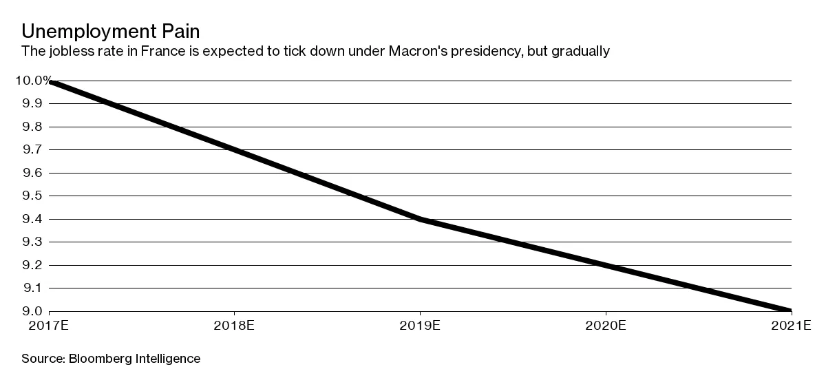 虽然总是存在抗议的威胁,但这些计划已经得到了充分的传达,因此得到了选民的授权。这与前任弗朗索瓦·奥朗德的改革情况有所不同。彭博情报的马克西姆·斯巴伊希表示,这应该提高马克龙的机会,即使经济痛苦在收益开始显现之前就已经感受到。