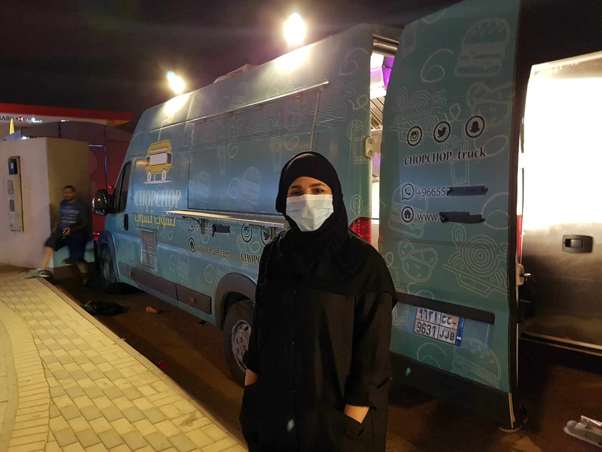 在利雅得的食品车旁,银行经理Mashaa Almotairi,35岁,表示她与一位姐妹和一位兄弟一起开了这家食品车,因为她热爱烹饪。在Chop-Chop,她每周工作几个晚上所赚的钱是她工资的五倍。