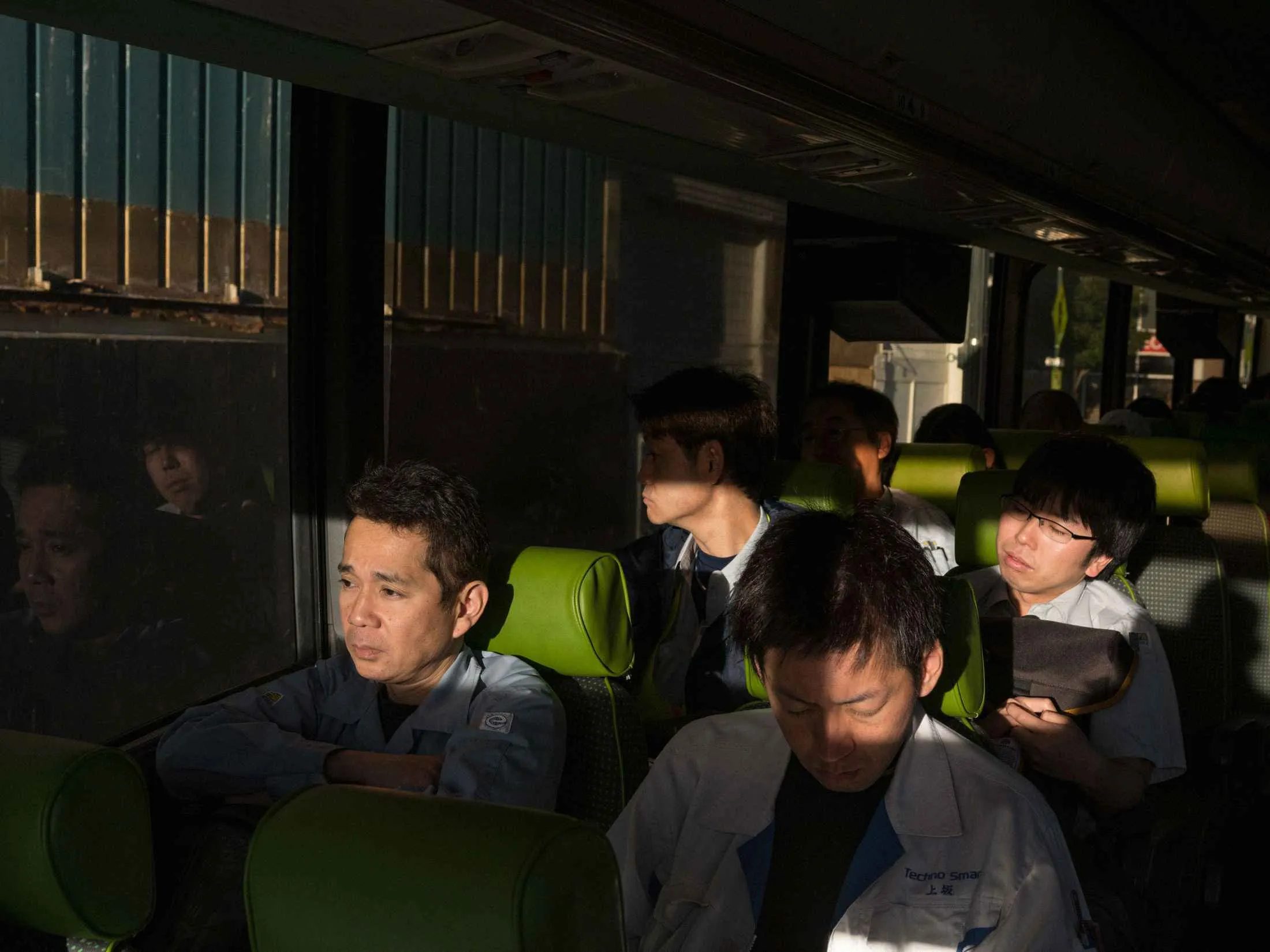 早晨乘坐巴士前往超级工厂的工人。摄影师:Lucas Foglia 为彭博商业周刊不久前,雷诺是一个房屋止赎之都和衰退的赌场城。“只有一个地方可以去,那就是向上,”市长希拉里·希维说。2011年,失业率接近14%,当时州长布赖恩·桑多瓦尔签署了一项旨在多样化州经济的法律,认识到仅靠赌博无法维持劳动力。