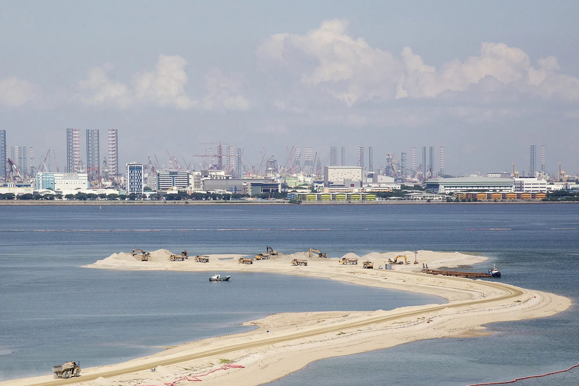 在背景中是新加坡,建设仍在国家花园的“森林城市”填海土地上进行。摄影师:欧瑞辉/彭博社