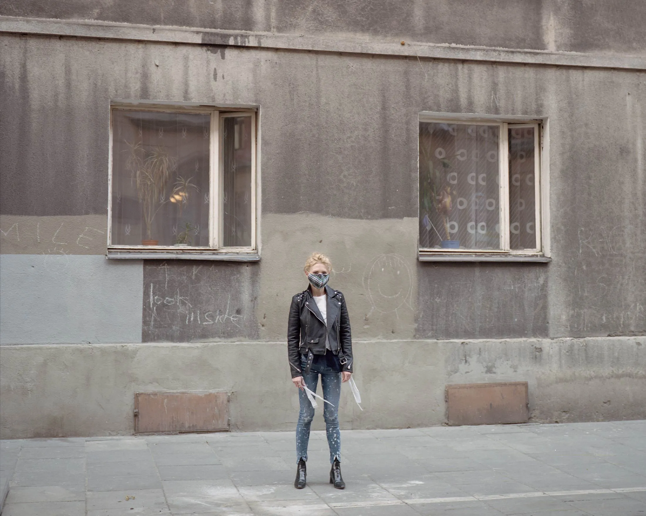 安妮亚·库尔帕斯的口罩没有过滤器,是由当地时尚设计师制作的。风格是一个考虑因素。摄影师:Tomer Ifrah 为《彭博商业周刊》