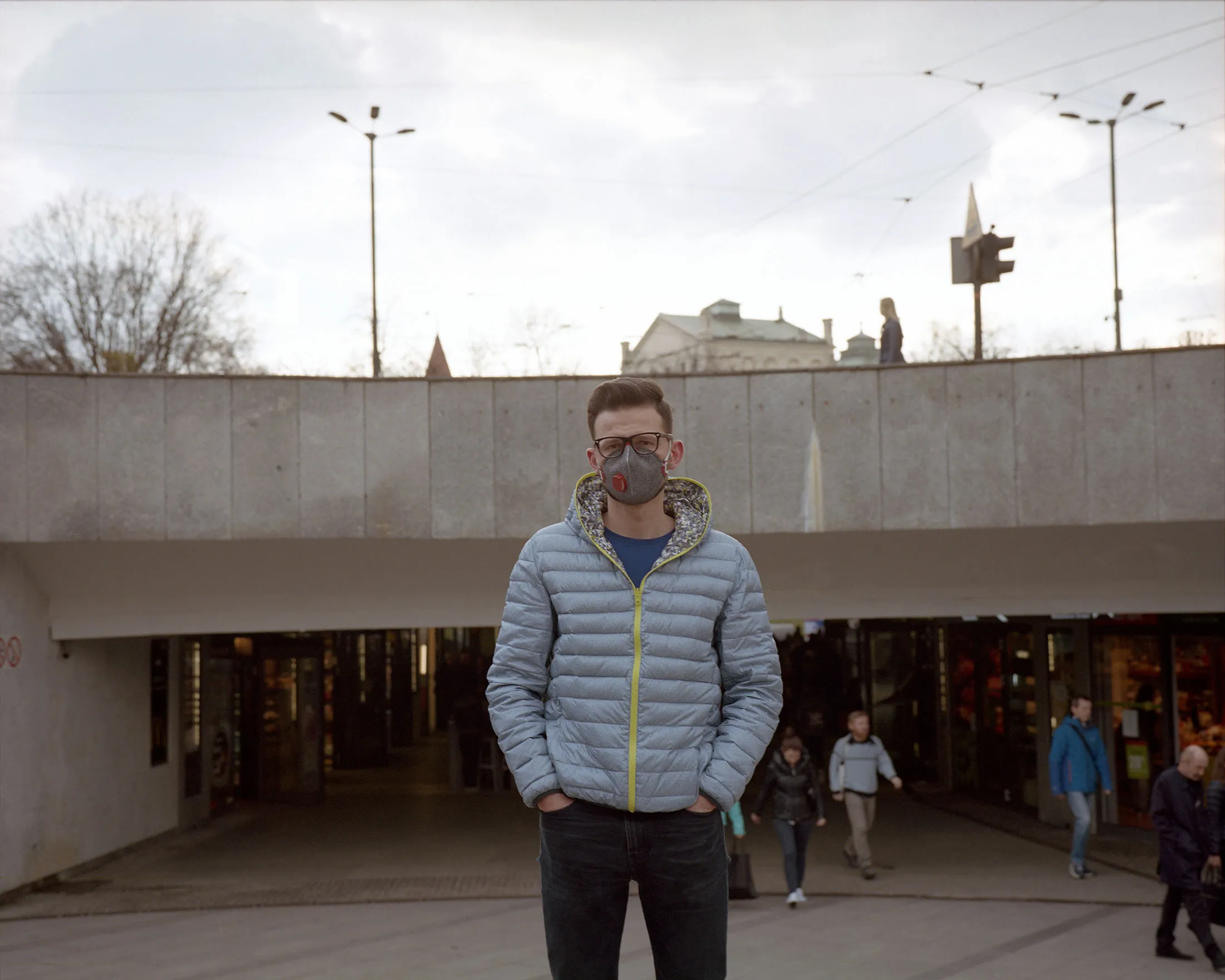 克劳迪亚·拉切克佩戴着她的RZ口罩。根据一些居民的说法,过去这个冬天有一个月,克拉科夫的空气中颗粒物的浓度达到了可接受水平的300%。摄影师:Tomer Ifrah 为《彭博商业周刊》