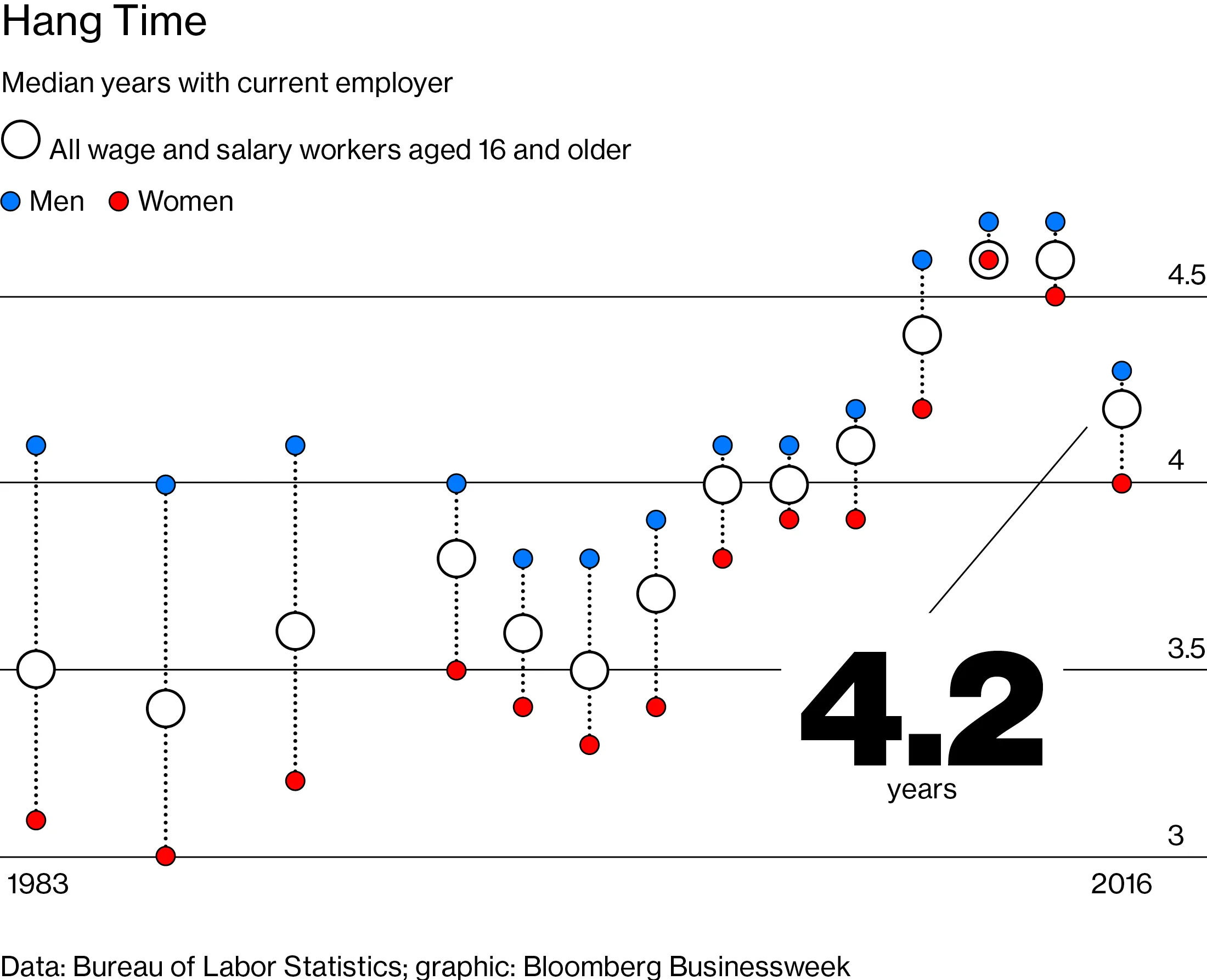 彭博社商业周刊他们不是隐士。寻求庇护者占据了拜登承诺关闭的监狱美国正在用寻求庇护者填满臭名昭著的前监狱大学橄榄球需要向大联盟学习一课那些销售比职业选手更多棒球棒的网红兄弟们根据美国劳工统计局在2016年1月最后一次检查时的数据,美国工资和薪金工人与当前雇主的中位数工作年限为4.2年。这比1980年代或1990年代的任何时候都要高。