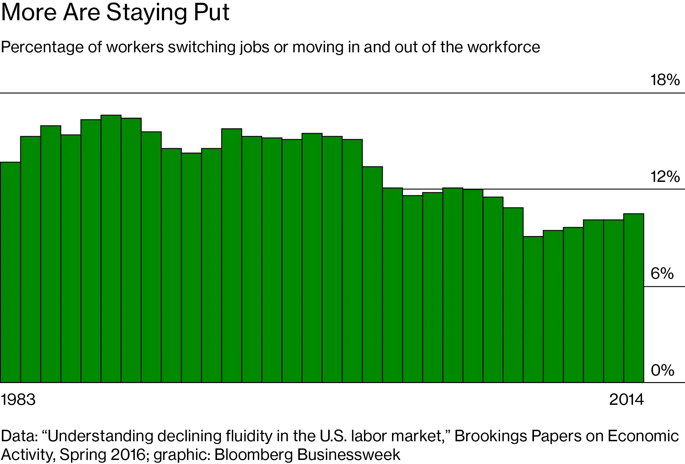 美国人更换雇主或进出劳动力市场的比例自1980年代以来一直在下降,联邦储备委员会和圣母大学的经济学家去年记录了这一点。