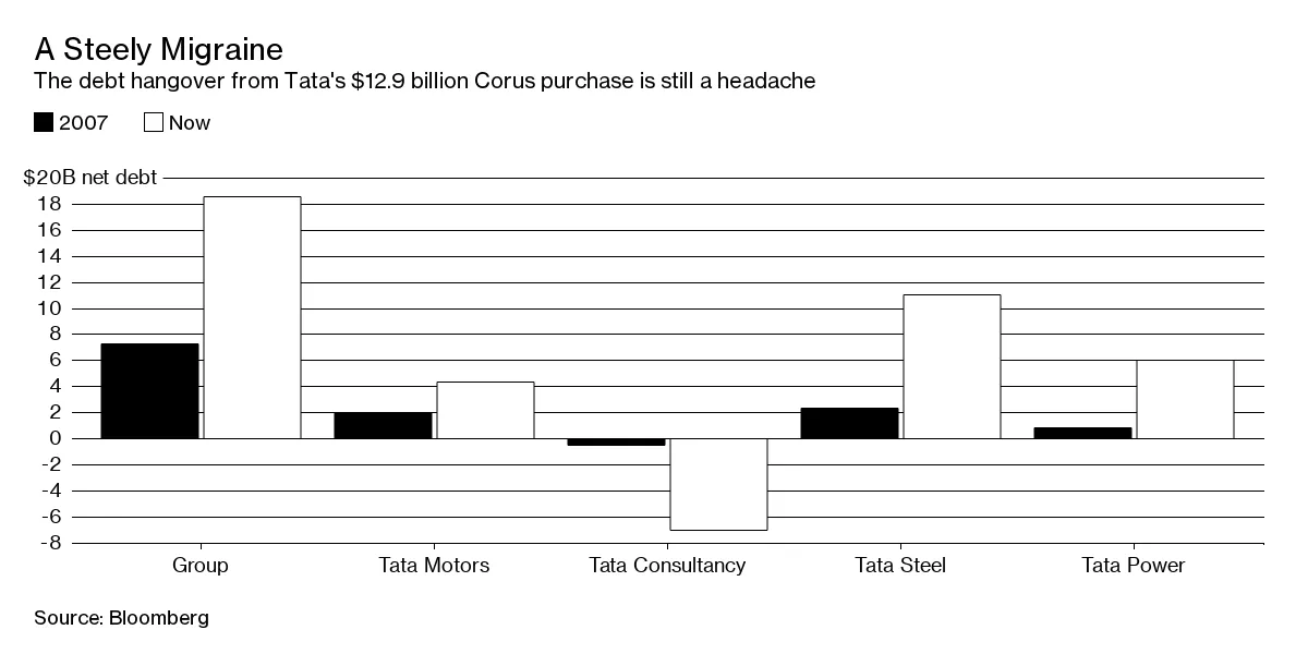 Tata集团的坚决“否”将是有帮助的。这家从盐业到软件的帝国仍在努力摆脱十年前一项危险的高价收购:129亿美元收购Corus Group Plc的钢铁资产。