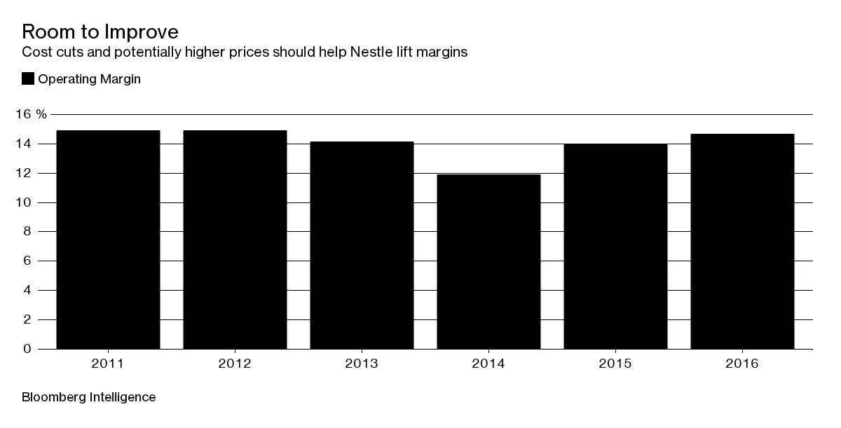 第三方呼吁雀巢在2020年前设定一个正式的运营利润率目标为18-20%,而该公司在2016年实现的利润率为14.66%,根据彭博情报。