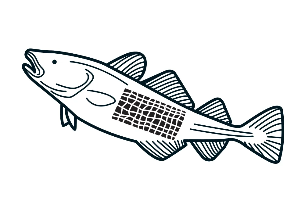今天,从Isafjordur码头,卡车将鱼运送到附近的商业加工设施。在那里,鱼被放在传送带上,短时间内就被切片和去皮。鱼肉被作为食品出售。每周两次,Kerecis的一名员工清晨早早来到这里,带着几个泡沫箱,收集合适大小、年龄和种类的鱼皮——该公司使用丰富的、脂肪含量高的鳕鱼。