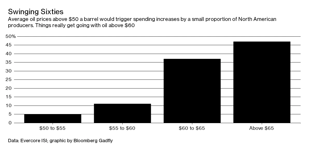 - 平均油价可能需要上涨到每桶60美元,页岩生产商才会真正打开阀门;