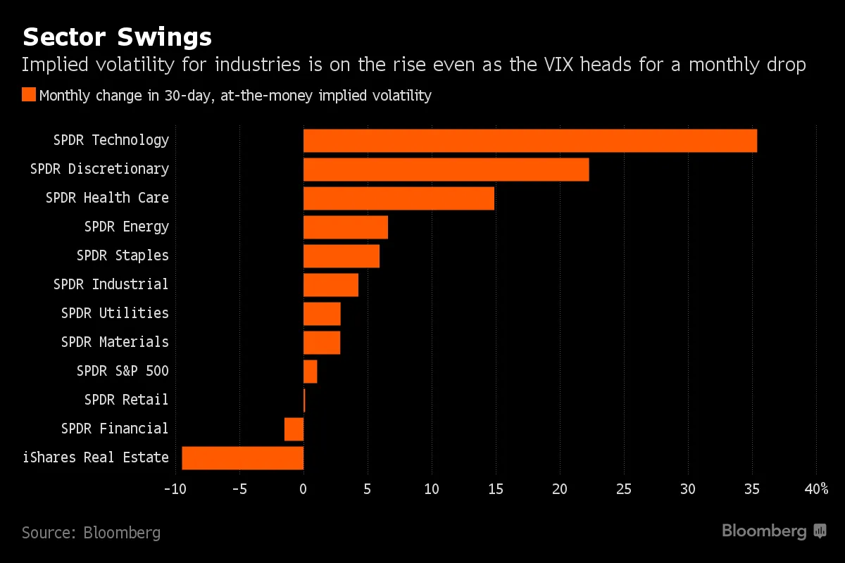 波动性可能非常不稳定根据彭博社的Cecile Vannucci,CBOE波动率指数有时并不能显示完整的故事。虽然该指标正朝着连续第四个月下降,许多人认为这是巨大的自满的反映,但关于美国交易所交易基金的数据表明,30天隐含波动率在大多数主要行业组中有所增加,并且在6月份对于追踪标准普尔500指数的最大ETF上涨了1.1%。摩根大通是预计随着中央银行政策变化市场将出现更大动荡的公司之一。同时,许多机构正在保护自己,以防止波动性突然飙升带来的严重后果,通过购买VIX的看涨期权。本周,一位投资者进行了异常大的交易,购买了100,000手7月VIX看涨期权,行权价为25美元,每手支付12美分,彭博社的Luke Kawa报道。