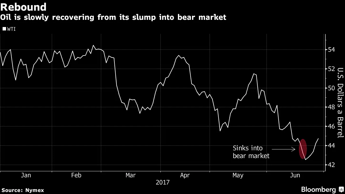 石油适合做空挤压原油价格连续第五天上涨,这是自五月以来最长的反弹。尽管总涨幅仅为5.29%,且油价仍低于每桶45美元,但这一上涨对上周看到原油跌入熊市的交易者来说应该是个好消息。周三的上涨是由于政府数据显示美国汽油供应下降,而在夏季驾驶季节开始时,汽油供应仍然顽固地保持在高位,彭博新闻的Meenal Vamburkar表示。“市场对汽油需求数据持怀疑态度,”Tortoise Capital Advisors的董事总经理和资金经理Brian Kessens说。交易者们在谈论油价适合进行所谓的“空头回补”反弹——即那些卖出合约希望从价格下跌中获利的交易者买回合约以获取利润或避免损失,彭博新闻的Alex Longley和Javier Blas表示。根据交易所数据,上周投机者在布伦特原油上的空头头寸上升至1.69亿桶,为2011年开始记录以来的最高水平。