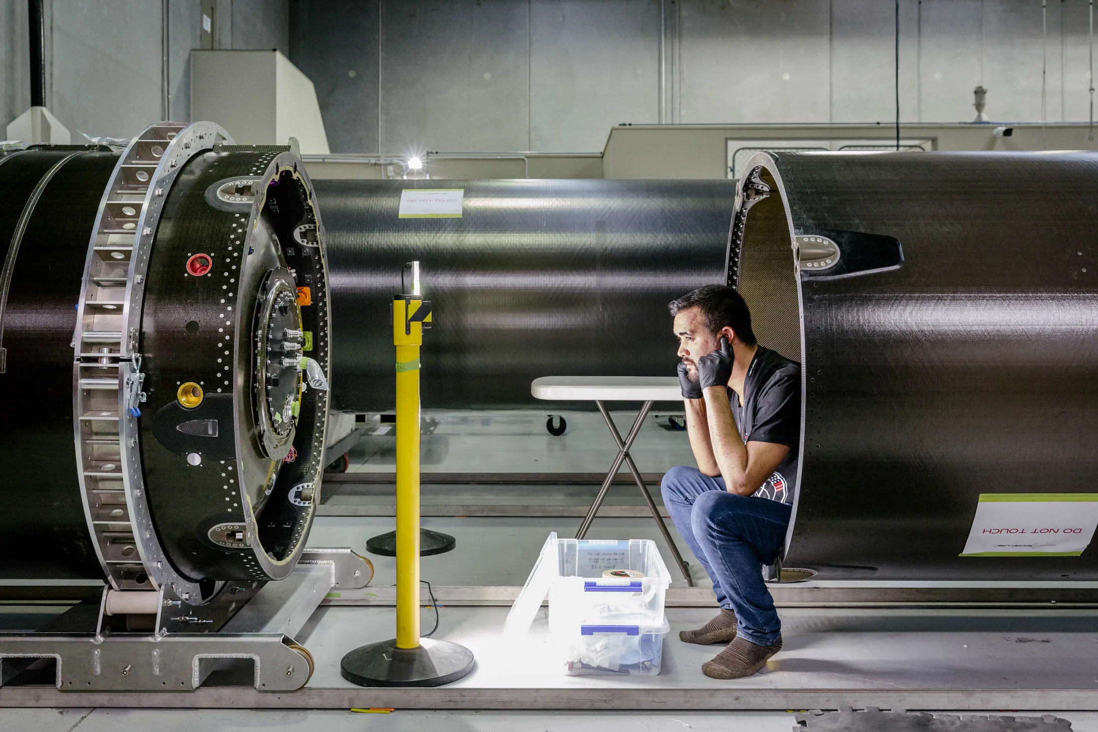 在火箭实验室的发射综合体1的机库内。摄影师:伊恩·特赫为《彭博商业周刊》拍摄自那次首次成功测试以来,火箭实验室已成为一个精干、成功的制造商。公司的制造设施位于奥克兰一个工业区的几座低矮仓库中,设有一个巨大的电子火箭组装区和软件工程师微调其以新西兰出生的物理学家欧内斯特·卢瑟福命名的卢瑟福发动机的房间。火箭实验室在几英里外的奥克兰机场附近的牧场进行发动机测试。偶尔事情会出错——比如一次失控的点火器引发的灌木火灾导致机场关闭——但总体而言,该公司进展远快于典型的航空航天初创公司。它已筹集了1.48亿美元来扩展其运营,估值超过10亿美元。