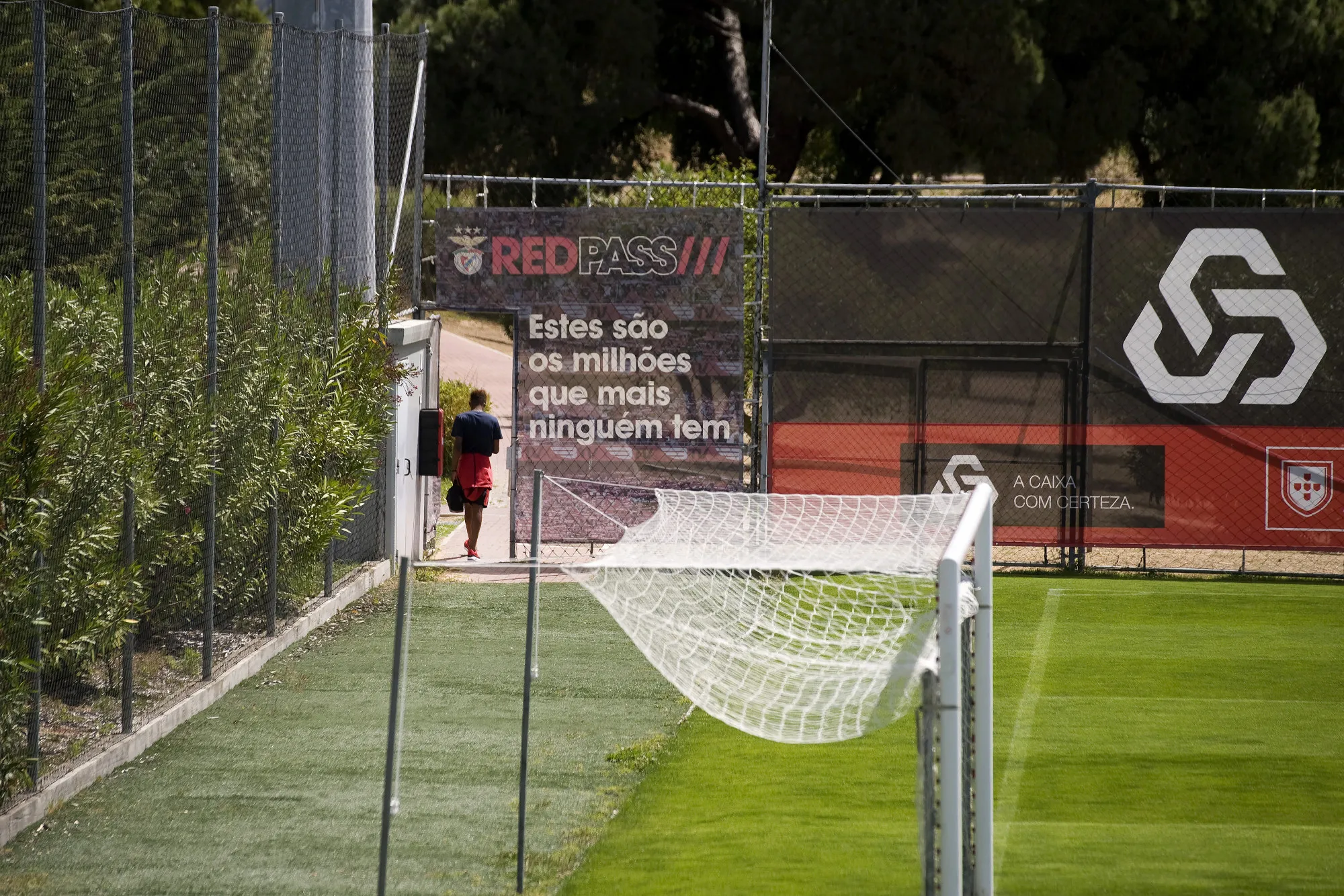 一名球员走离体育里斯本本菲卡的凯莎足球青训营的训练场。