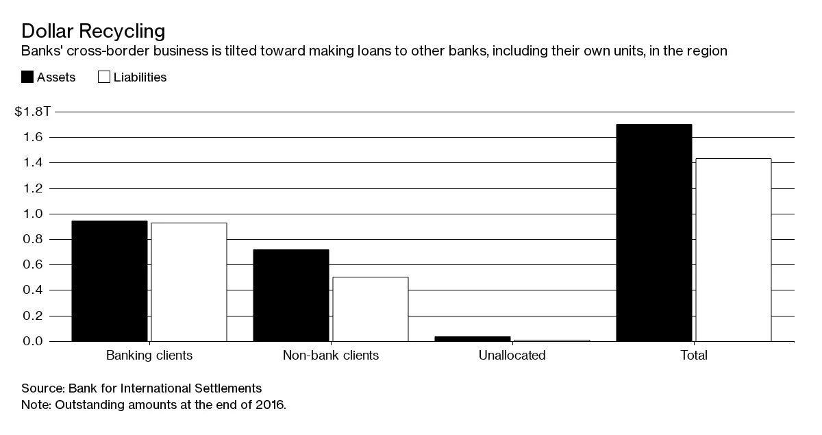 在全面变革中,最大的脆弱性仍然是20年前的情况:美元。出口导向的亚洲客户仍然希望获得美元,而欧洲银行从跨境金融的撤退为国内贷款方填补空白和全球化提供了日益增长的机会。但他们没有足够的美元存款。