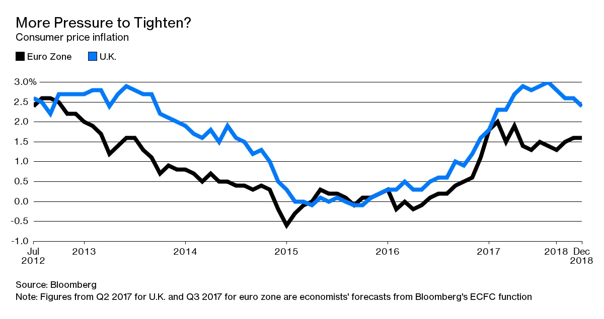 表面上,英国的通胀速度快于欧元区,这促使人们对英国政策反应的猜测。