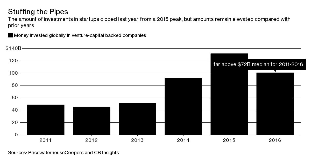随着硅谷面临从之前的初创投资中回收现金的压力,更多年轻科技公司将耗尽资金而倒闭。今年以来,已经有超过十亿美元的投资者资金在健身硬件公司Jawbone、食品配送初创公司Sprig和消息应用Yik Yak的关闭中被抹去。预计在2017年会听到更多五彩斑斓的术语“独角尸”——即死去的独角兽初创公司。