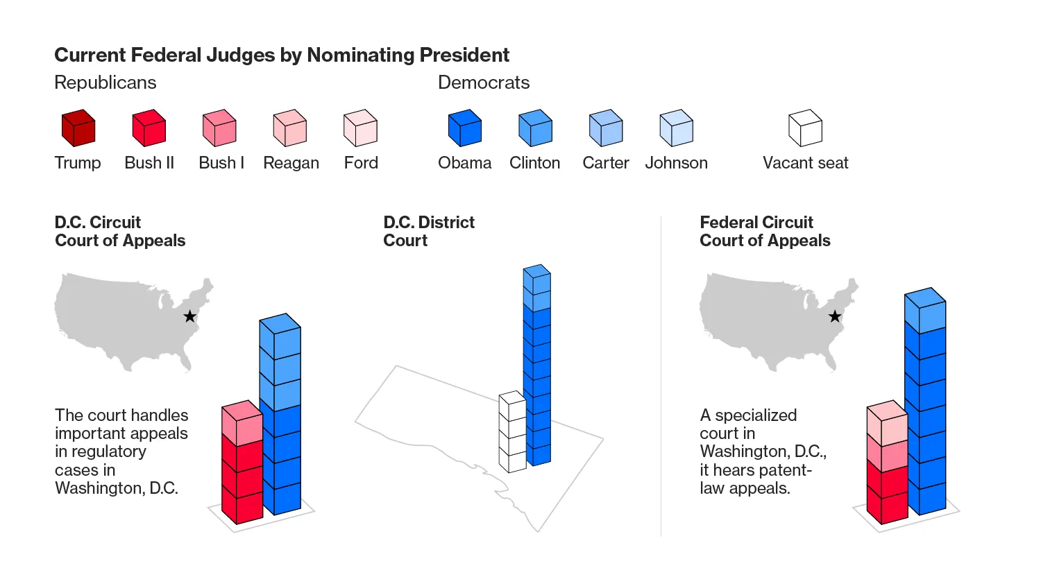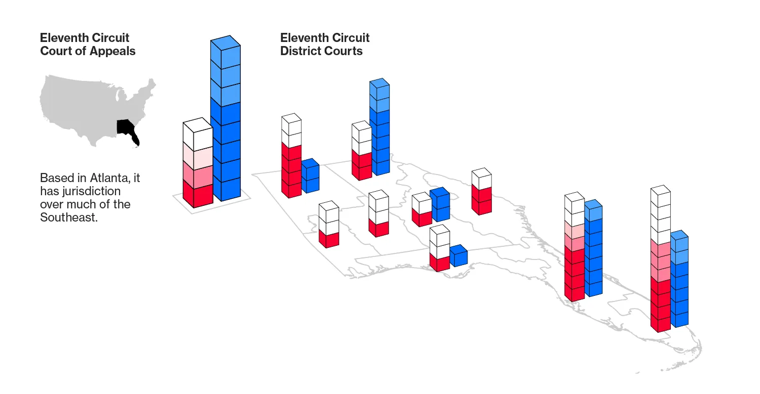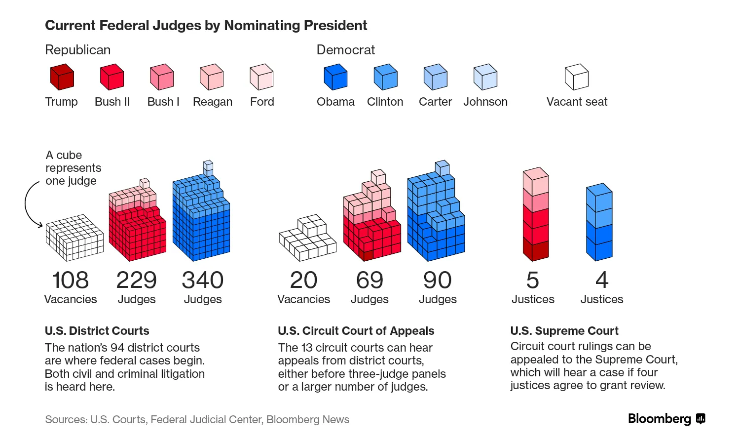 但是,国会对加兰的口袋否决,这位64岁的温和派和华盛顿有影响力的美国上诉法院首席法官,仅仅是长期战略的最公开表现。在2015年控制参议院后,共和党人将减缓奥巴马对下级法院提名的进程作为他们的使命。这一努力导致特朗普继承了107个审判和中级上诉法院的相对较大空缺。这比特朗普的五位直接前任中四位所面临的空缺还要多,依据公共事务网站Ballotpedia的资料。只有比尔·克林顿总统的初始空缺更多,达到了111个。相比之下,奥巴马上任时只有54个下级法院空缺,而乔治·W·布什总统则有84个。特朗普的107个起始空缺占所有890个联邦司法职位的12%。