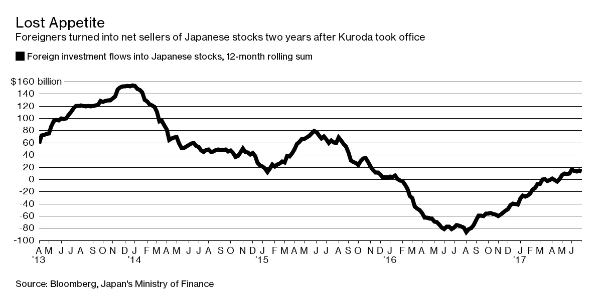 首先,约30%的东证指数公司由外国机构投资者持有。日元贬值侵蚀了外国人的资本收益,而波动性使对冲成为一项必要的麻烦。