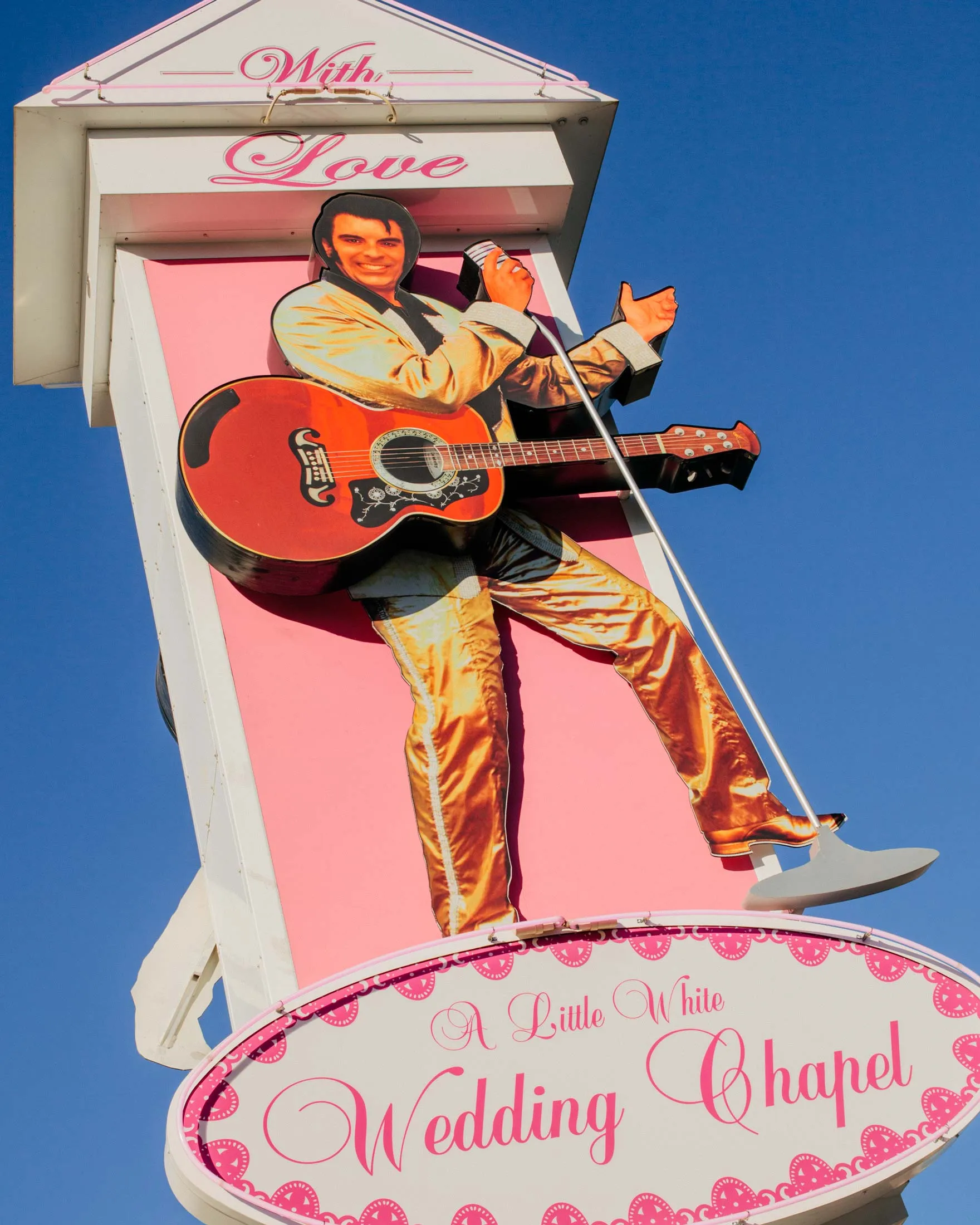 与此同时,传统依然存在。小白婚礼教堂——2004年布兰妮·斯皮尔斯开始她55小时婚姻的地方——继续宣传“浪漫且实惠的选择。”这些套餐的名称如“恋人的甜蜜与简单”、“骑士特别”和“爱情隧道盛宴。”