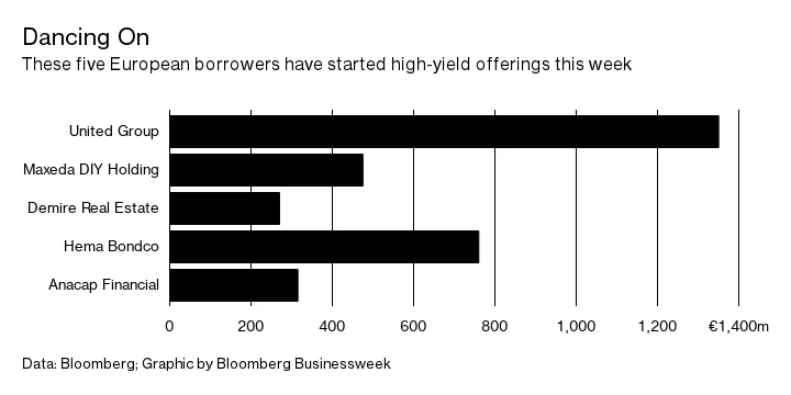 但水域已经平静到足以让五家欧洲公司在周一开始高收益债券发行。