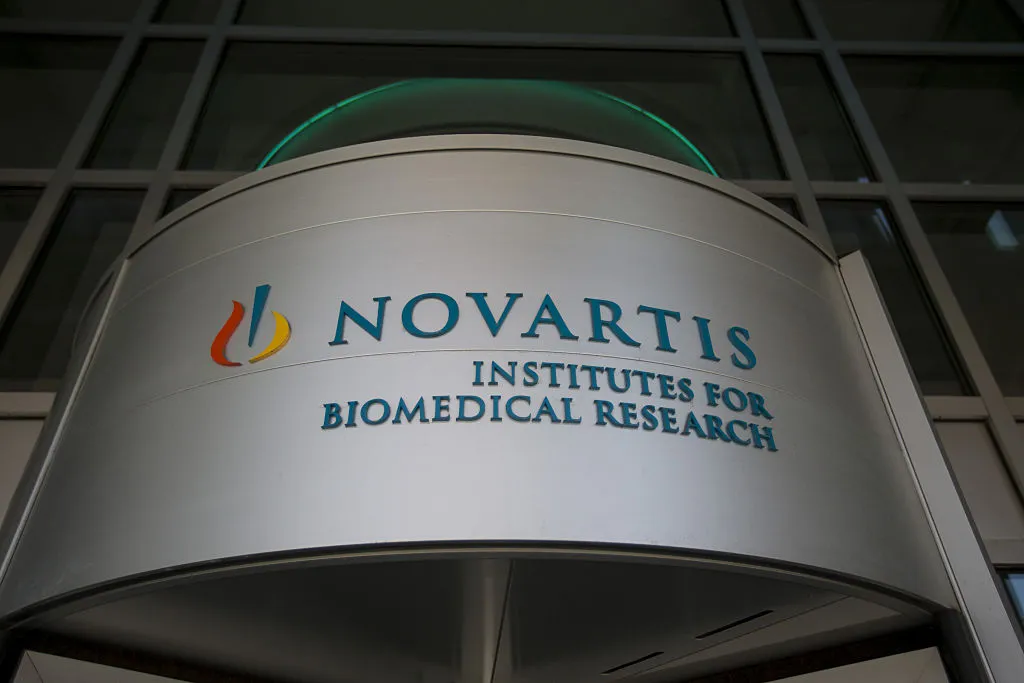 标识在美国马萨诸塞州剑桥的诺华制药生物医学研究所大楼外部展示,时间是2016年8月5日,星期五。