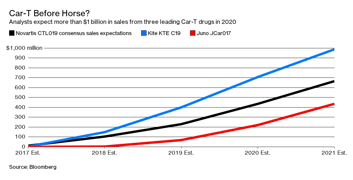 然而,诺华的药物和其他CAR-T的销售估计表明,华尔街分析师认为这些药物将被广泛接受: