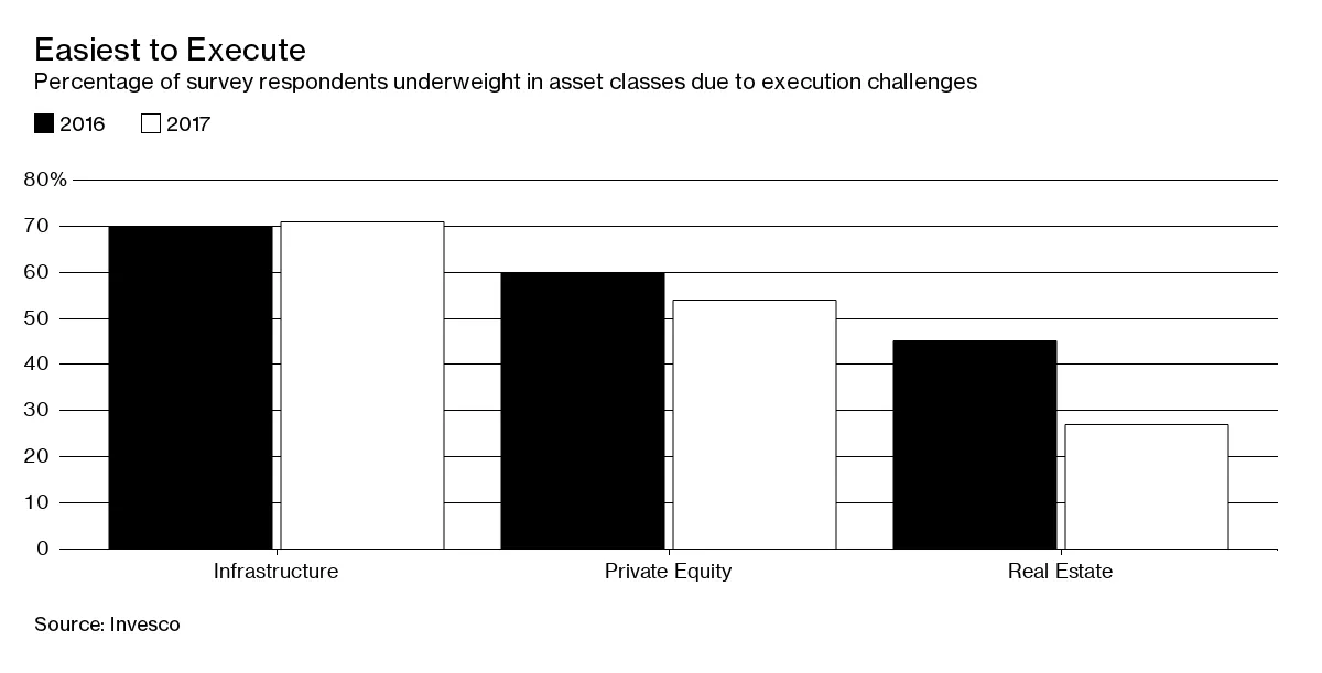 接受调查的58%的人表示更高的收益是房地产的主要吸引力,Invesco预计资金将继续追逐这一资产类别的交易。这些资金可能别无选择;但很容易看出,回报可能不会那么出色。