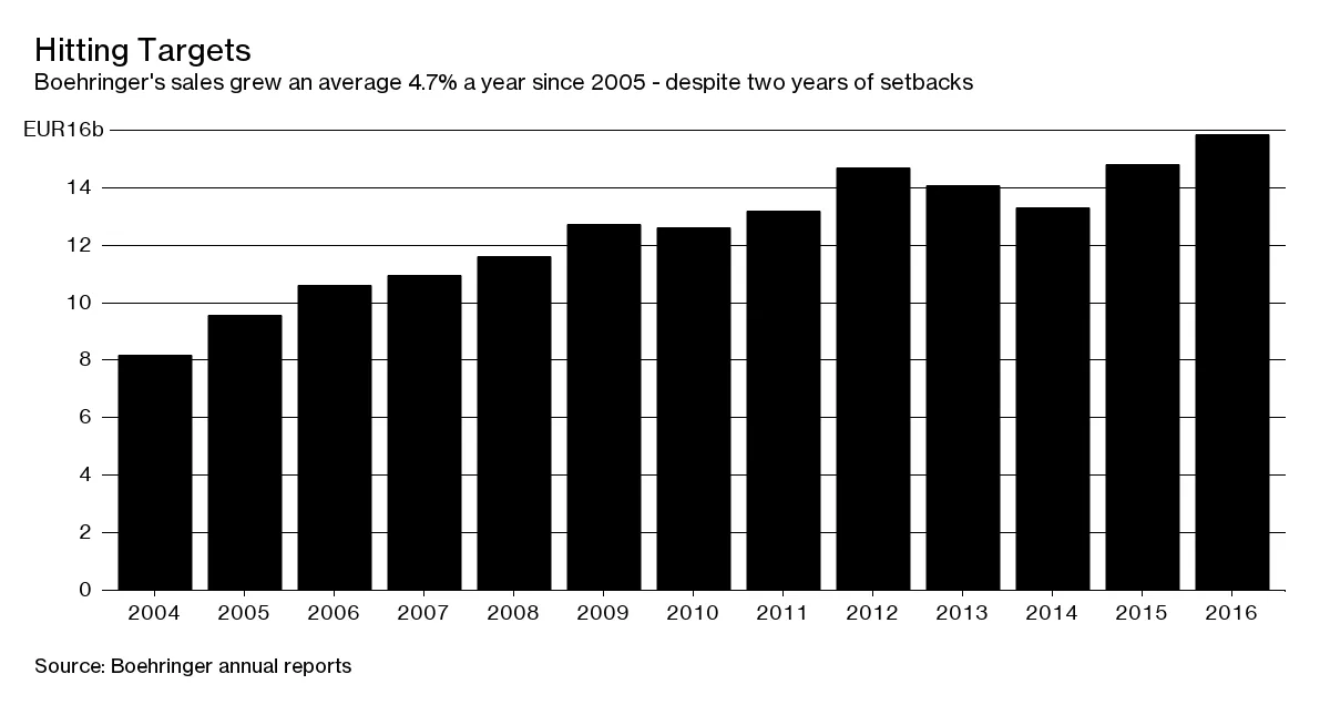 这一交流在今年的法庭证词中披露,体现了博世英格海姆面临的压力。现在,由于年轻、更有雄心的世代掌权,它设定了到2025年将销售额提高近60%的内部目标,达到250亿欧元(285亿美元)。目前,这将使其跻身全球十大制药公司之列。然而,该公司仍然保持神秘,并不愿采取大胆的举措。