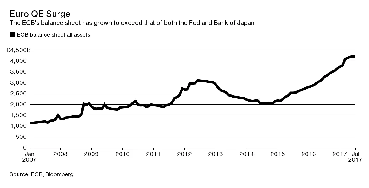 上一次欧洲央行会议上,利率的宽松倾向已转为中性。预计至少会保持到2018年底。第二步是制定缩减当前每月600亿欧元债券购买的程序。