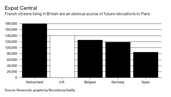 但这仍然是一个长期的缓慢过程,而不是脱欧尚未提供的瞬间雷霆。而选择不仅仅是在伦敦或巴黎之间:比利时和德国也吸引了相当数量的法国 expatriates,分别约为125,000和118,000,而瑞士——一个非欧盟成员——则拥有180,000。