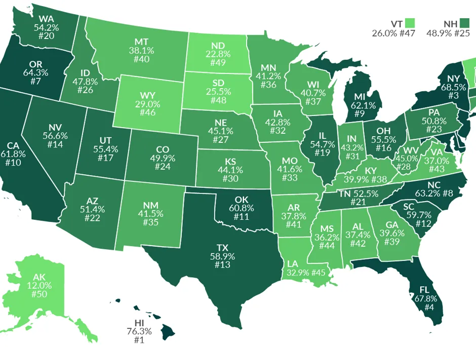 虽然大部分农村西部和南部严重依赖联邦收入来支付道路费用,但夏威夷自掏腰包支付的费用最高,高额的车辆重量费和高昂的州燃油税。