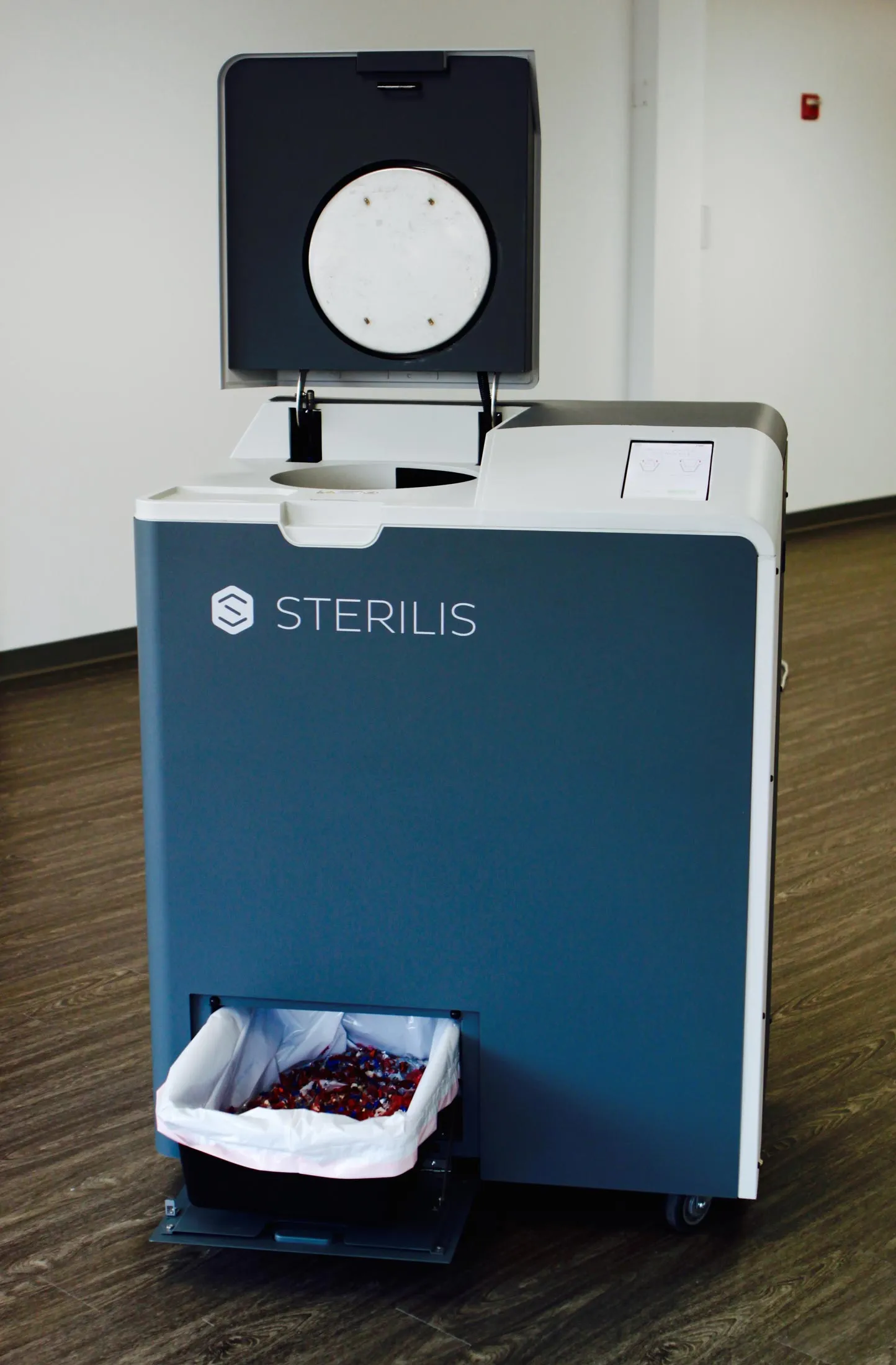 研磨机在另一个半小时内将无菌废物减少到五彩纸屑大小的碎片。Sterilis机器将这些碎片放入一个可以放入普通垃圾桶的袋子中,并在云账户中记录处置记录,用户可以在线查看。
