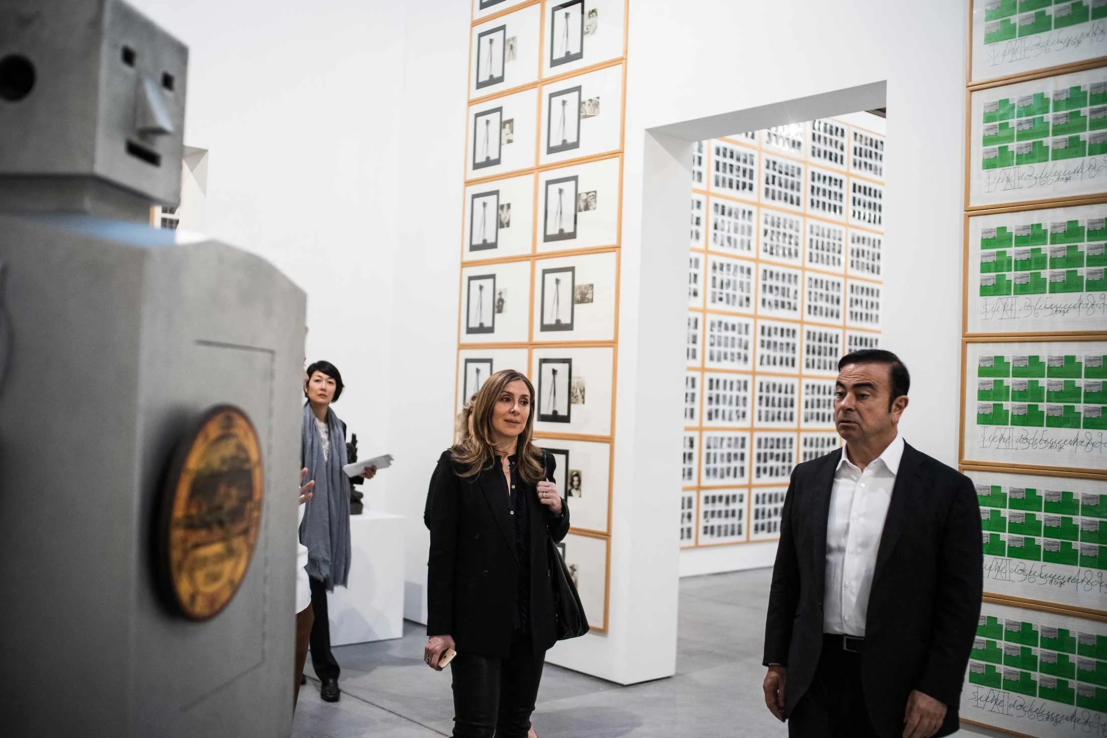 戈恩和他的妻子卡罗尔在纽约的一家艺术画廊。摄影师:米莎·弗里德曼/彭博社在泰国,戈恩坐在一张长桌的首位,主持与大约40位来自亚洲的日产高级管理人员的闭门会议。