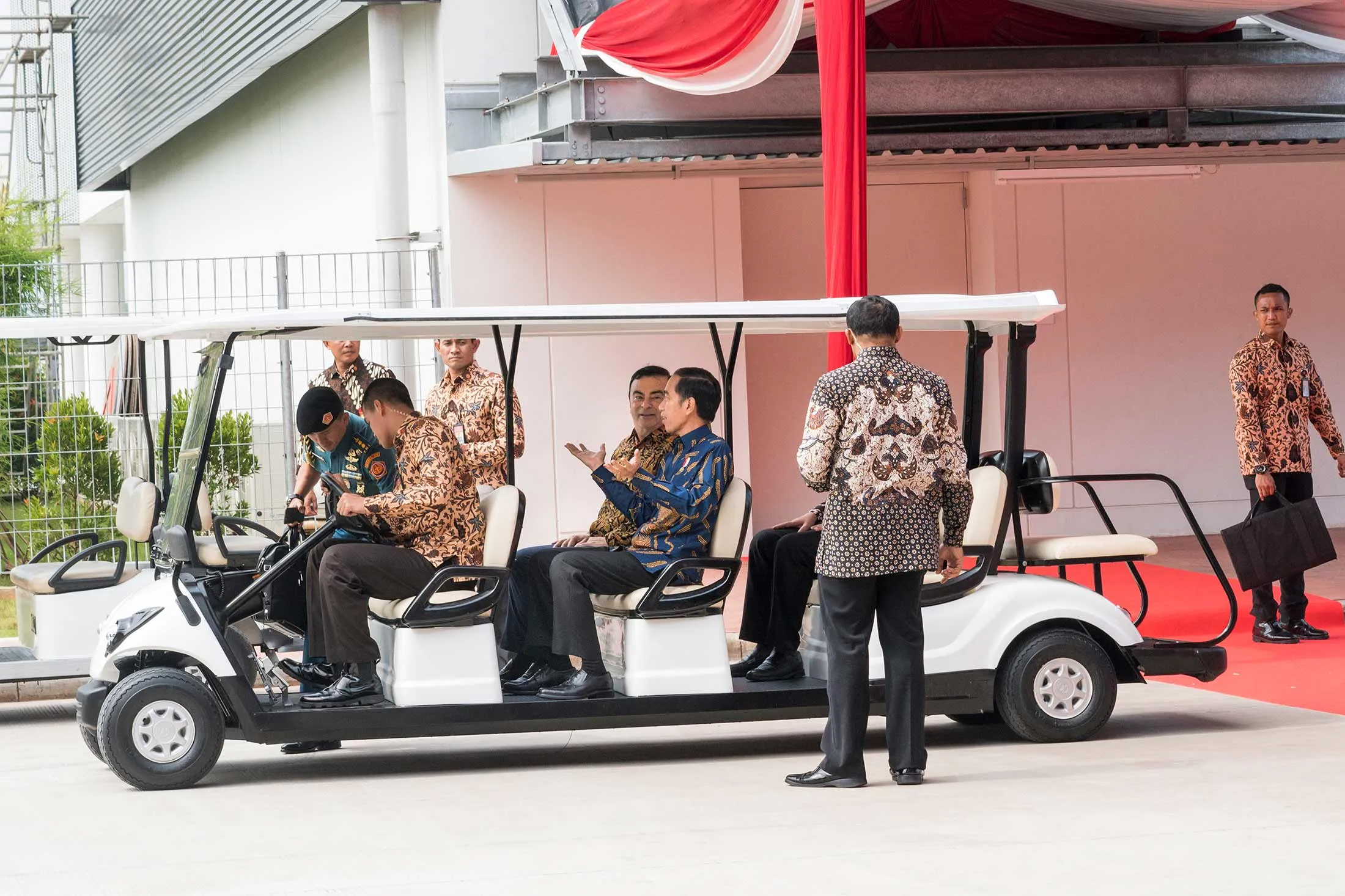 戈恩穿着巴蒂克。与印度尼西亚总统并肩走进房间,他的衬衫未扎,领口敞开,显得毫无汗水。许多男性——尤其是外国人——可能很难驾驭巴蒂克。美国副总统迈克·彭斯在前一周飞往雅加达,并且也与总统会面——穿着西装。然而,戈恩在这里,与一小圈VVIP们互致问候,穿着巴蒂克,仿佛他家里有一整柜的巴蒂克。